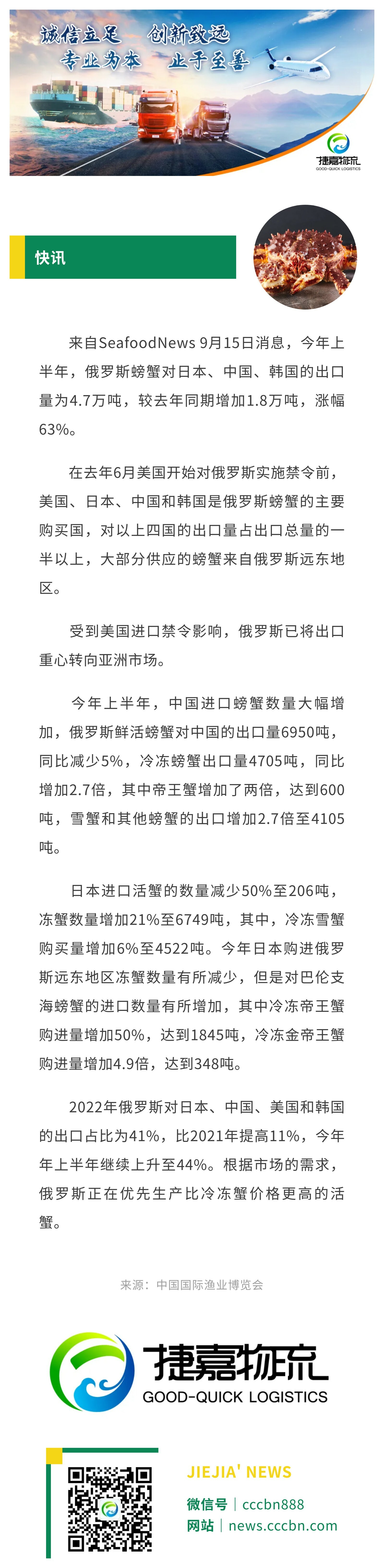 境外涉农 | 今年上半年俄罗斯螃蟹出口重心在亚洲市场