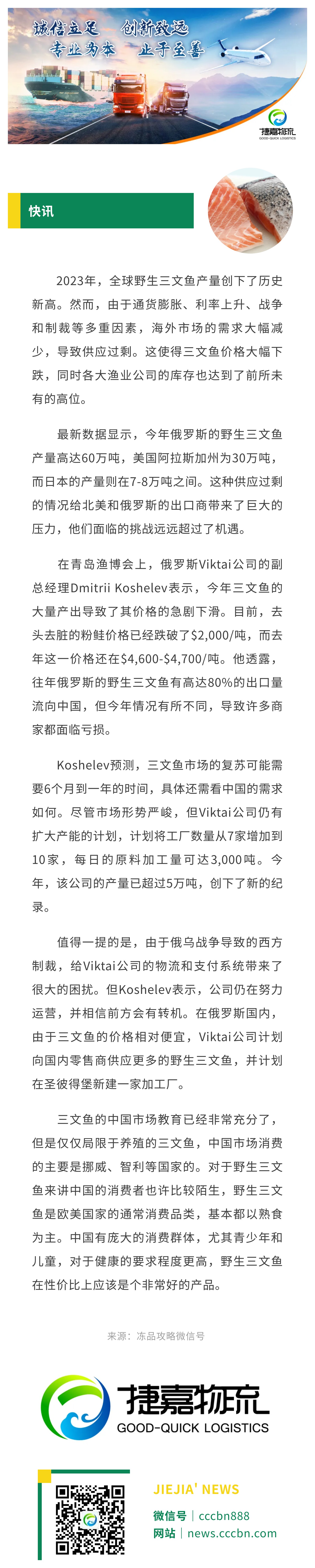 境外涉农 | 全球野生三文鱼产量创新高,中国市场机会巨大
