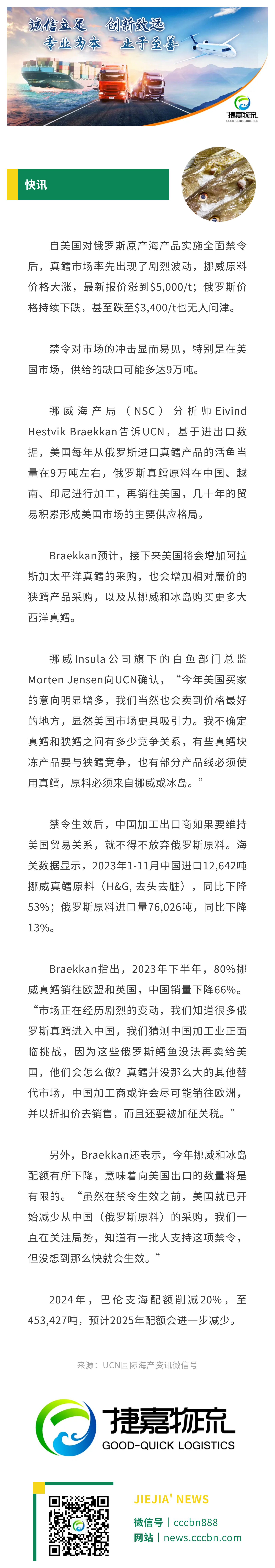 境外涉农 | 美国禁令或导致9万吨真鳕需求缺口,中国加工商转战欧洲市场