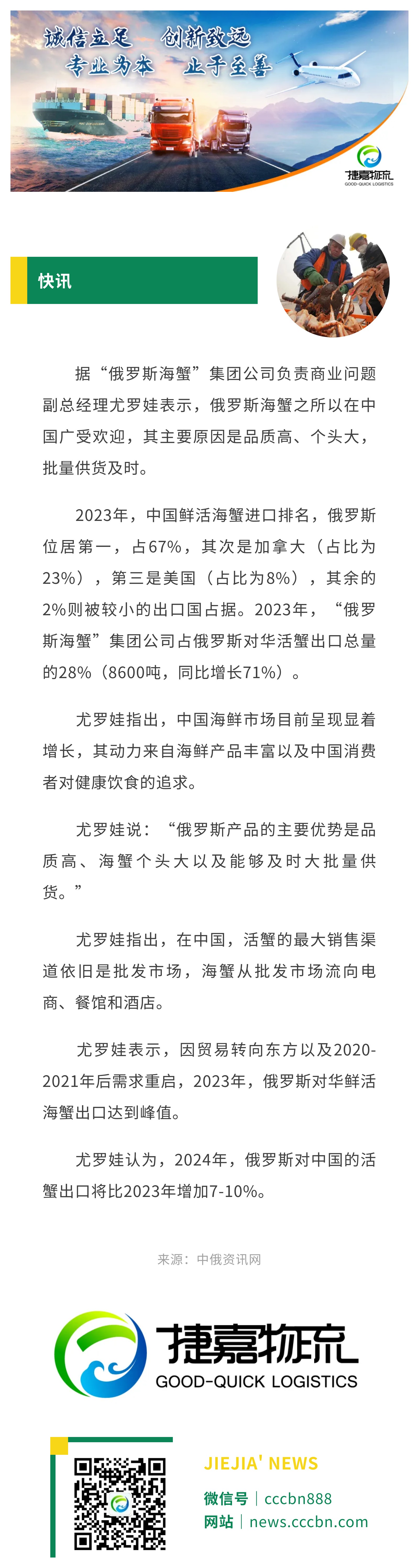 境外涉农 | 俄罗斯位居中国鲜活海蟹/帝王蟹进口排名第一 达到峰值