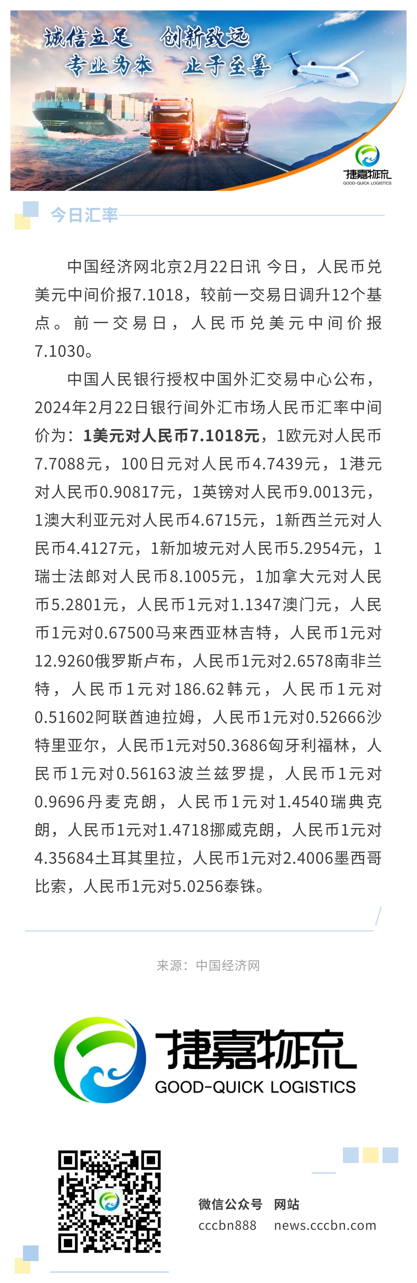 2月22日人民币兑美元中间价报7.1018,调升12个基点