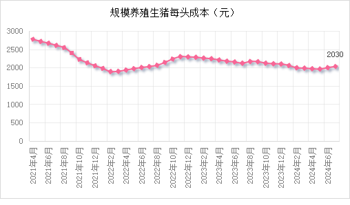 6、2024年7月份规模养殖生猪每头成本2030元,环比增长1.6%,同比下降4.3%;
