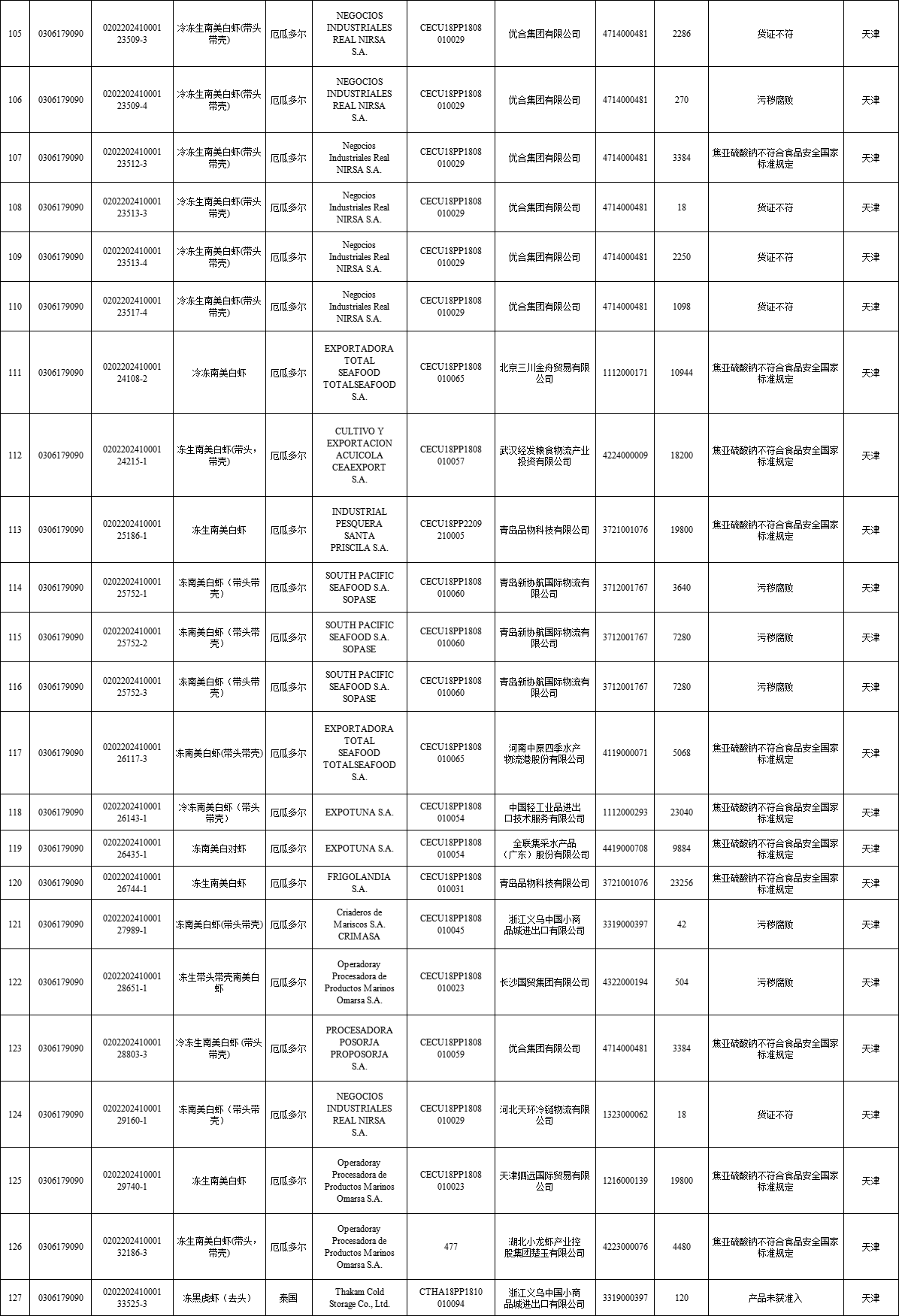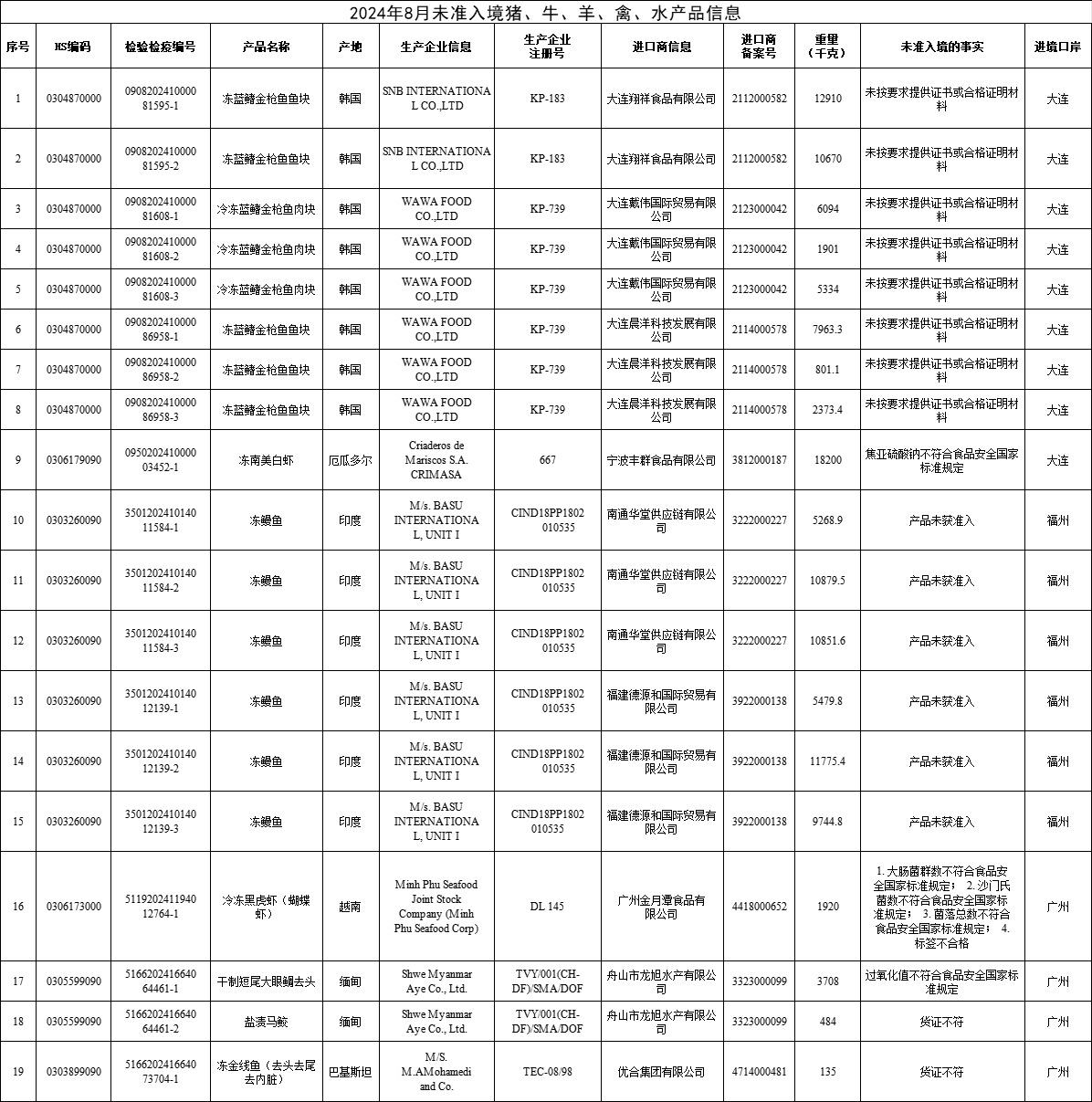 04 | 2024年8月全国未准入境猪、牛、羊、禽、水产品信息 |