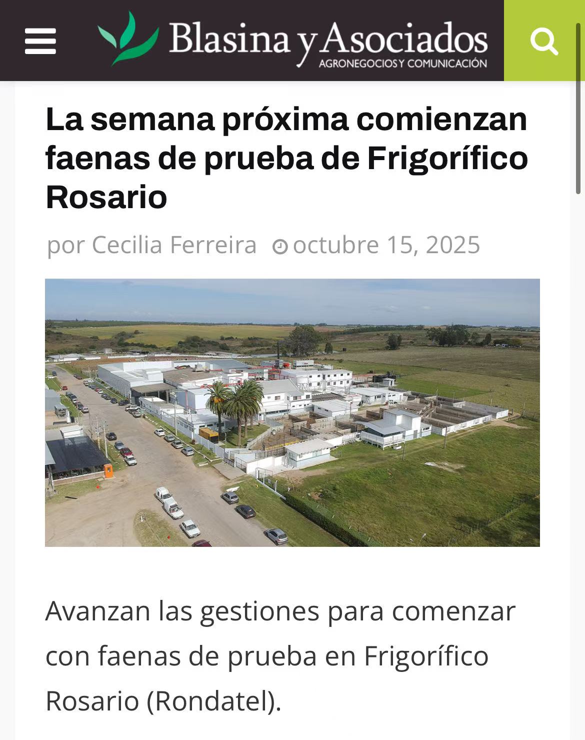 在获得中资股东注资后,此前停产的乌拉圭罗萨里奥屠宰场(Frigorífico Rosario,即22厂)已具备复产条件。工厂经理Gonzalo Calviño表示,复产初期将在生产线上先行开放三个试点进行测试,以此为核心步骤,获取乌拉圭官方的正式运营许可,并据此申请恢复向中国出口牛肉的资质。