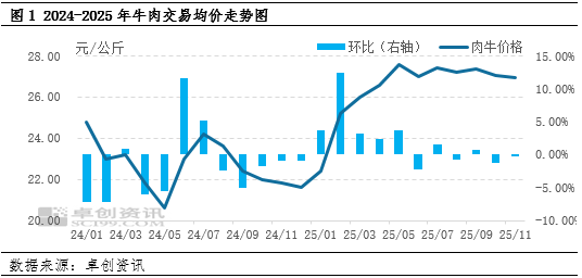 2025年四季度,中国肉牛市场呈现"旺季不旺"行情,在供需双重压力下价格呈现反季节性回落。国内集中出栏与进口持续增量形成供应叠加效应,而终端消费提振乏力,导致市场价格承压运行。随着牛肉进口量仍有增量预期,且港口库存充盈,预计12月供需宽松的格局仍将延续,价格难有明显上涨动力。