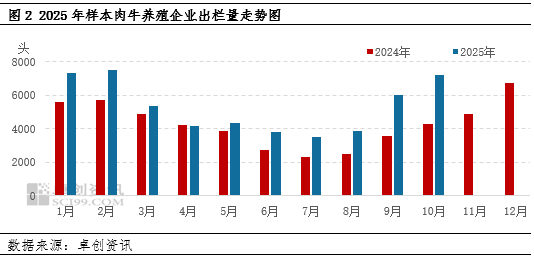 牛肉消费的疲软是本轮价格回调的重要影响因素。据卓创资讯数据显示,截至10月,卓创资讯监测肉牛样本屠宰量为3.81万头,环比下滑6.39%。部分头部企业宰量下滑幅度明显。屠宰企业普遍面临"收购顺畅、销售不畅"的困境,部分企业已通过减少屠宰班次等方式调整生产计划。