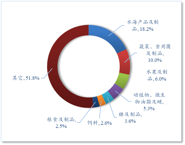 前9个月,前十大省市对美出口农产品合计占比超过85%,其中占比居前两位的广东、山东两省出口额均有下降;福建、江苏、辽宁、安徽降幅均超过24%;浙江、上海降幅在10%以上;河南、陕西出口降幅较为缓和。