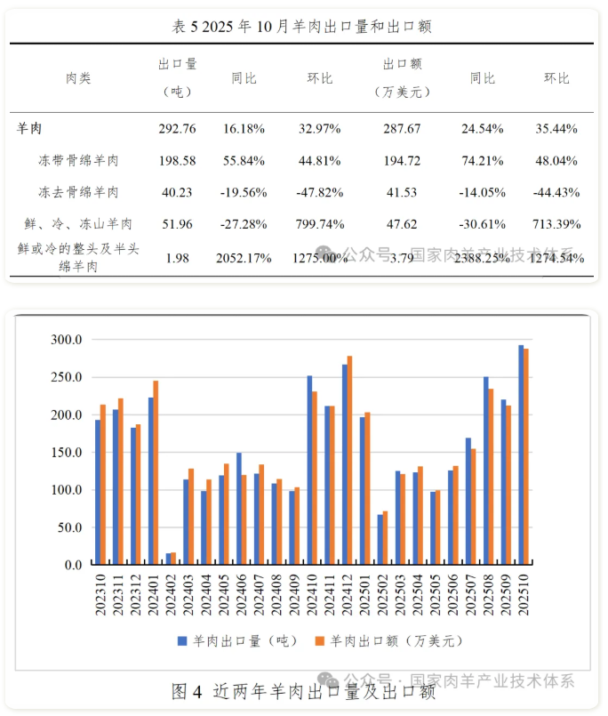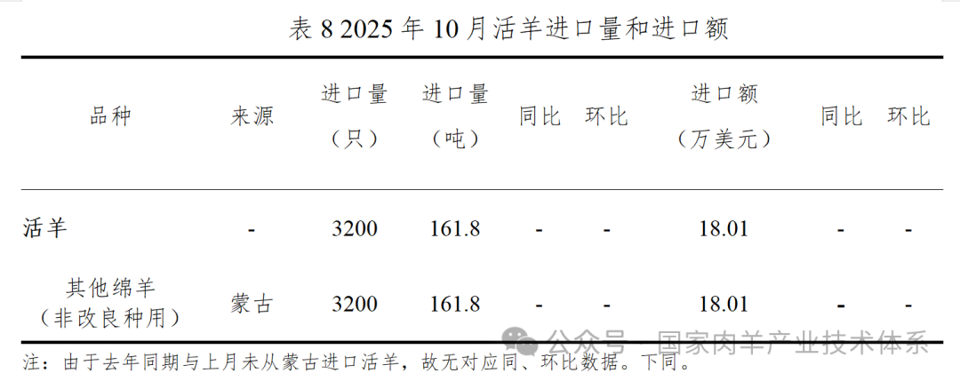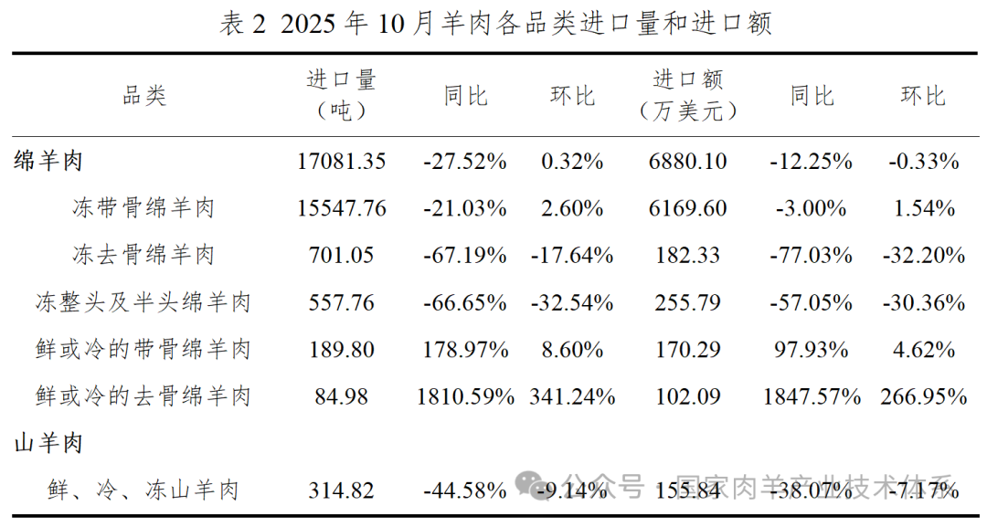 下面对2025年10月中国羊肉及活羊的进出口的情况进行总结。