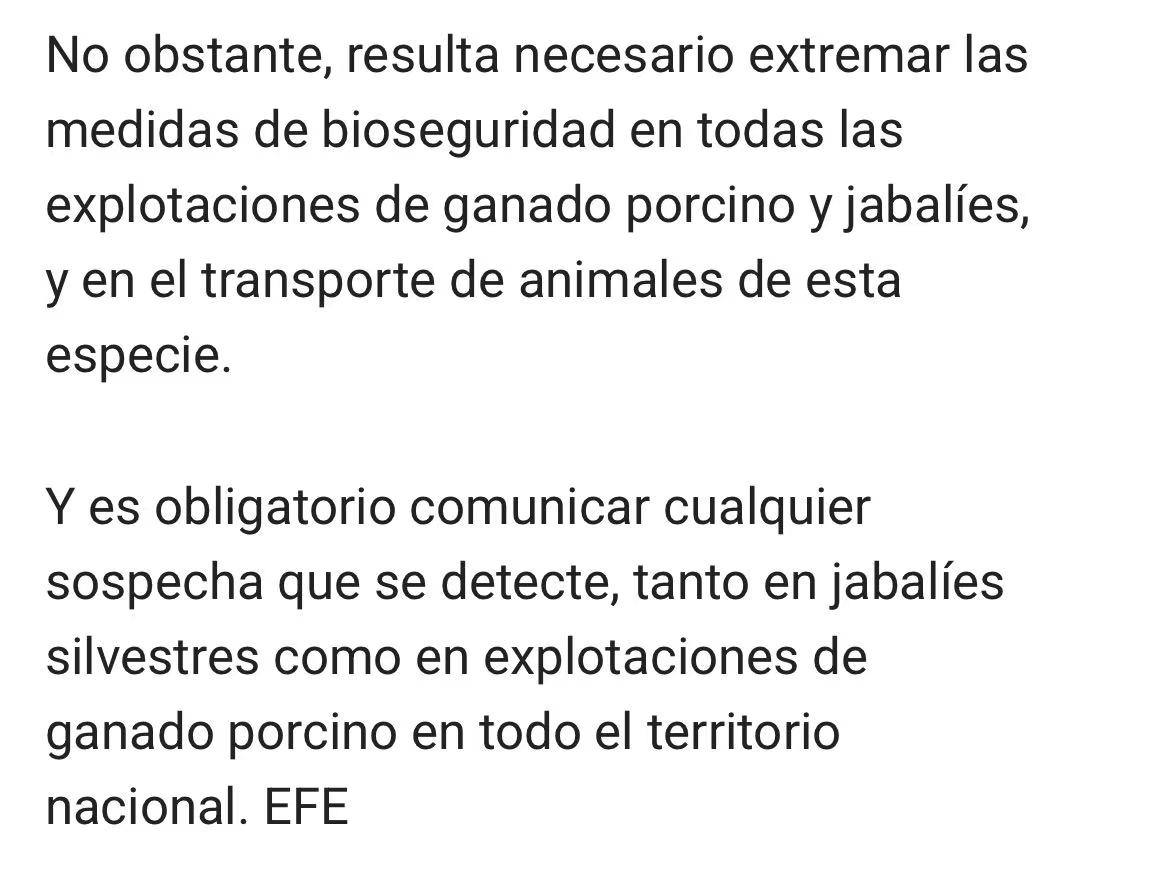 非洲猪瘟不会感染人类,但可在猪群中快速传播。西班牙农业部呼吁全国养殖场持续强化生物安全,并要求发现疑似病例立即上报。