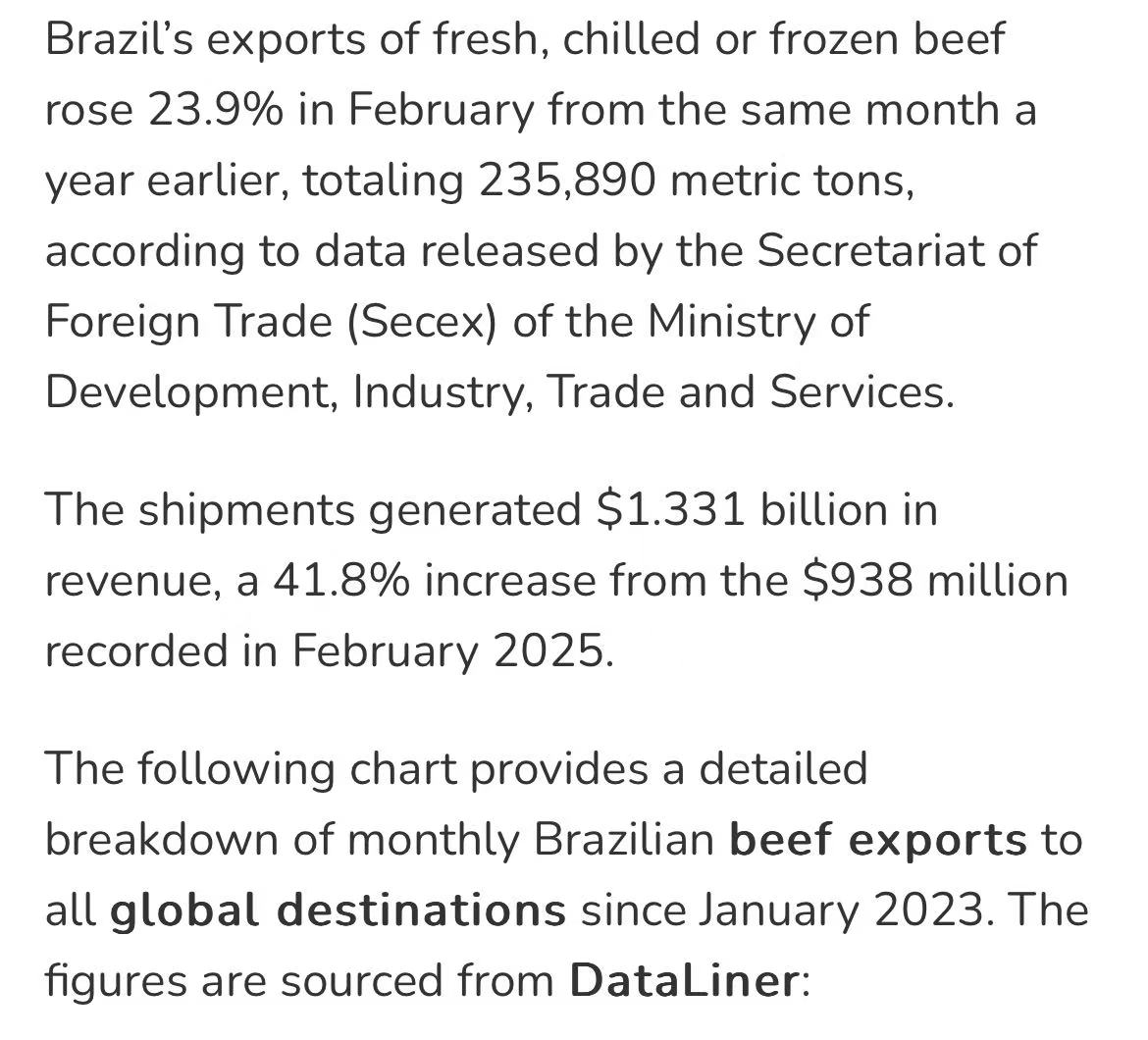 2月巴西牛肉出口增长23.9%