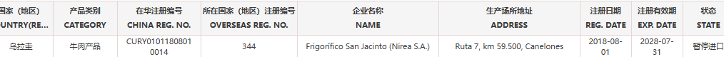 捷嘉 ·关注 | 【准入更新】暂停乌拉圭一家牛肉企业产品输华