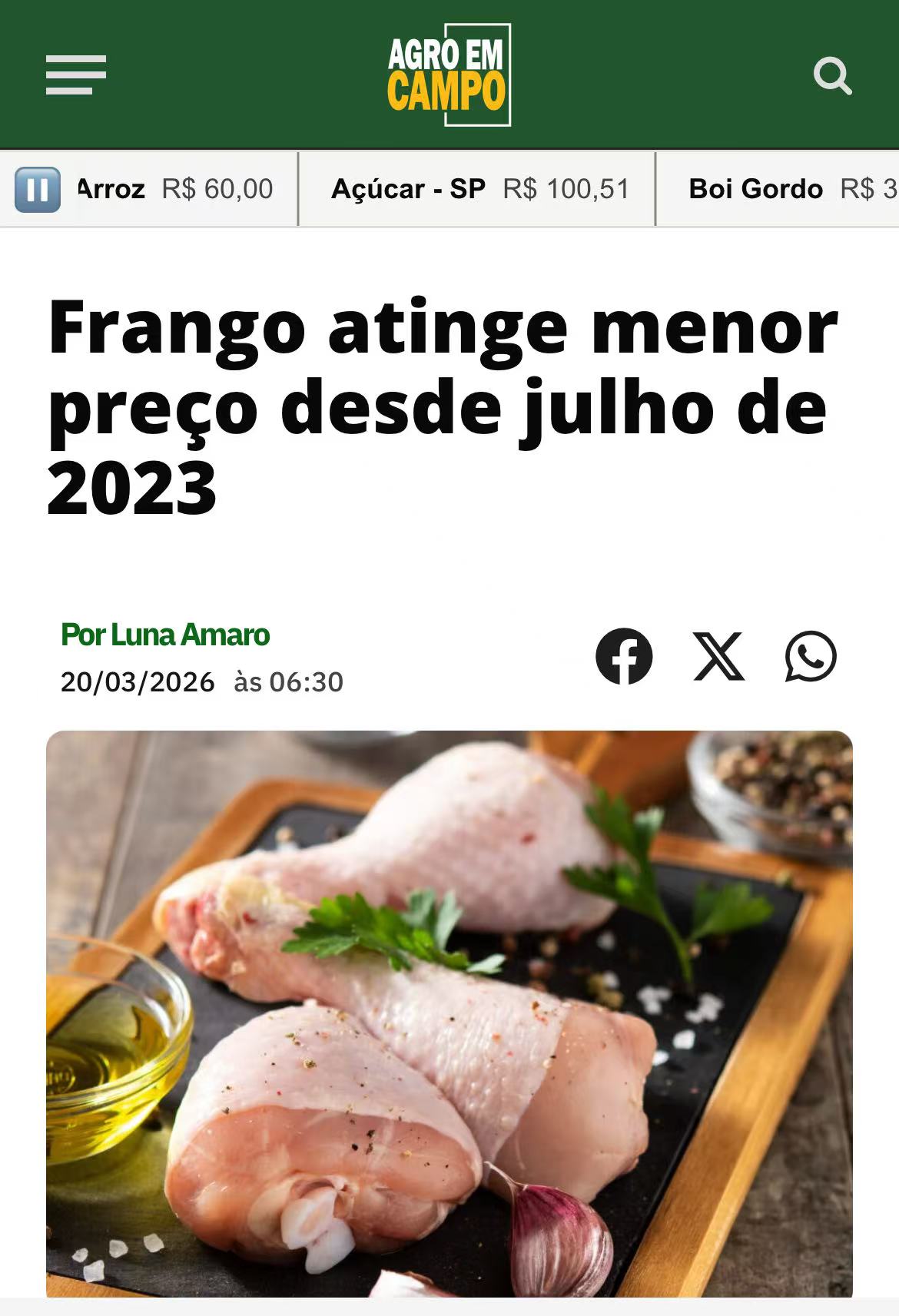 Cepea监测数据显示,3月巴西鸡肉价格持续走低。截至3月18日,大圣保罗批发市场冰鲜鸡均价6.73雷亚尔/公斤,较2月下跌5.2%,为2023年7月以来实际价格最低点。