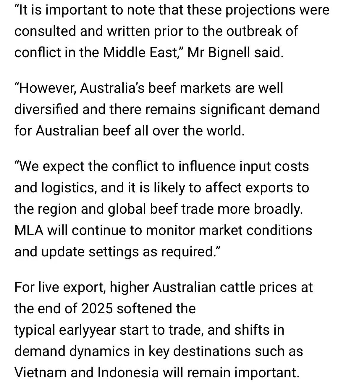 第三,中东冲突是潜在变量。报告明确提及冲突对物流和成本的影响尚未完全计入预测。如果海运费持续高位,澳大利亚牛肉到岸价的竞争力可能受到削弱。