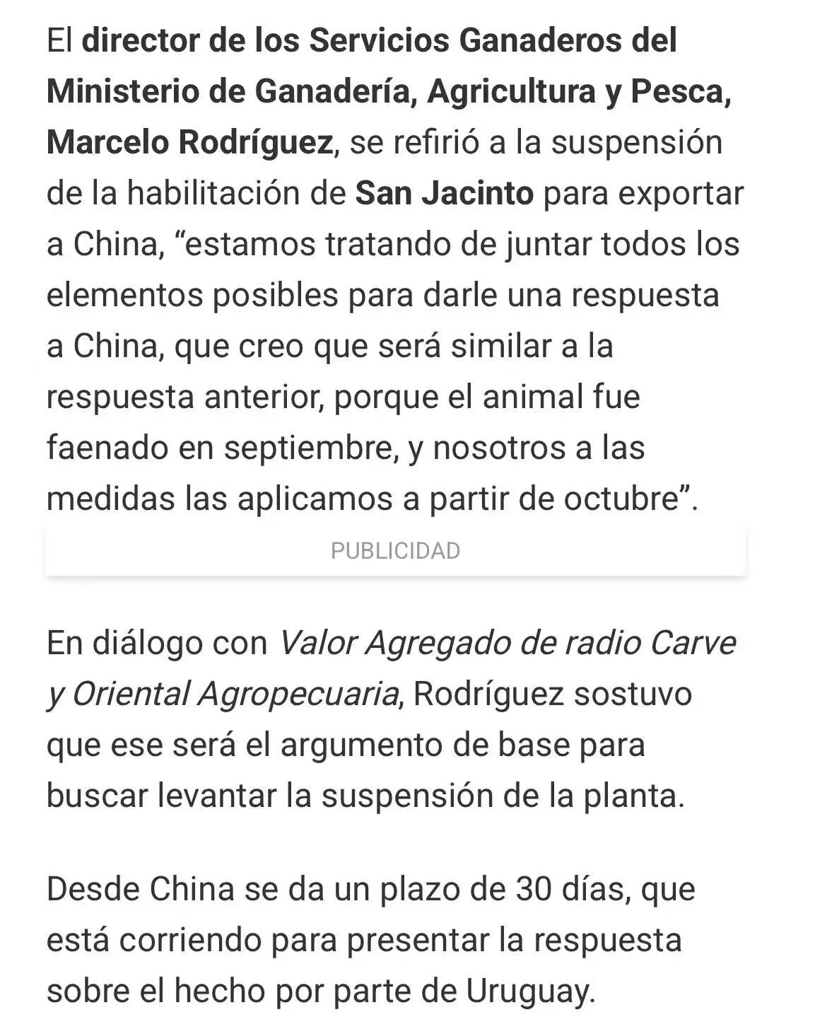 因药残问题,乌拉圭San Jacinto工厂(344厂)被中方暂停对华出口资质。乌方获得30天期限进行回应。