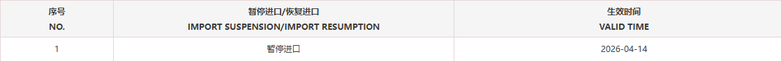 暂停受理巴拿马1家禽肉企业(注册编码为:23-C)自2026年4月14日(含)起启运的输华产品进口申报。