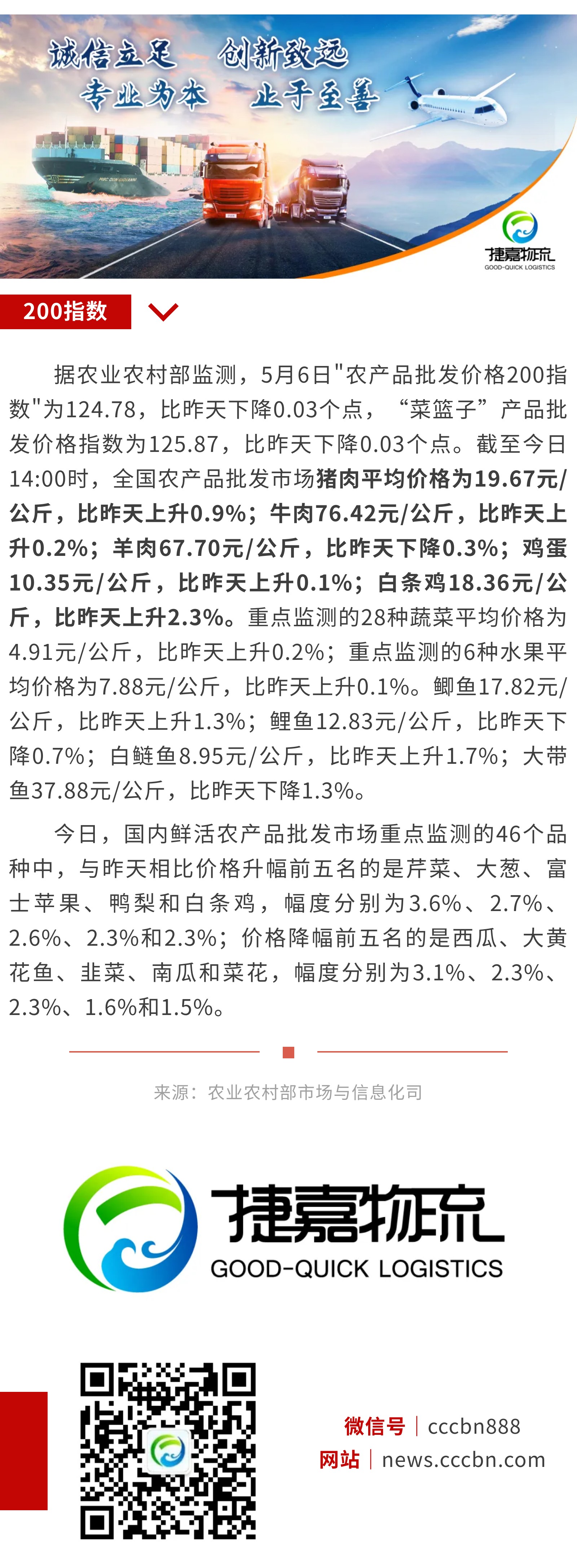 5月6日:"农产品批发价格200指数"比昨天下降0.03个点
