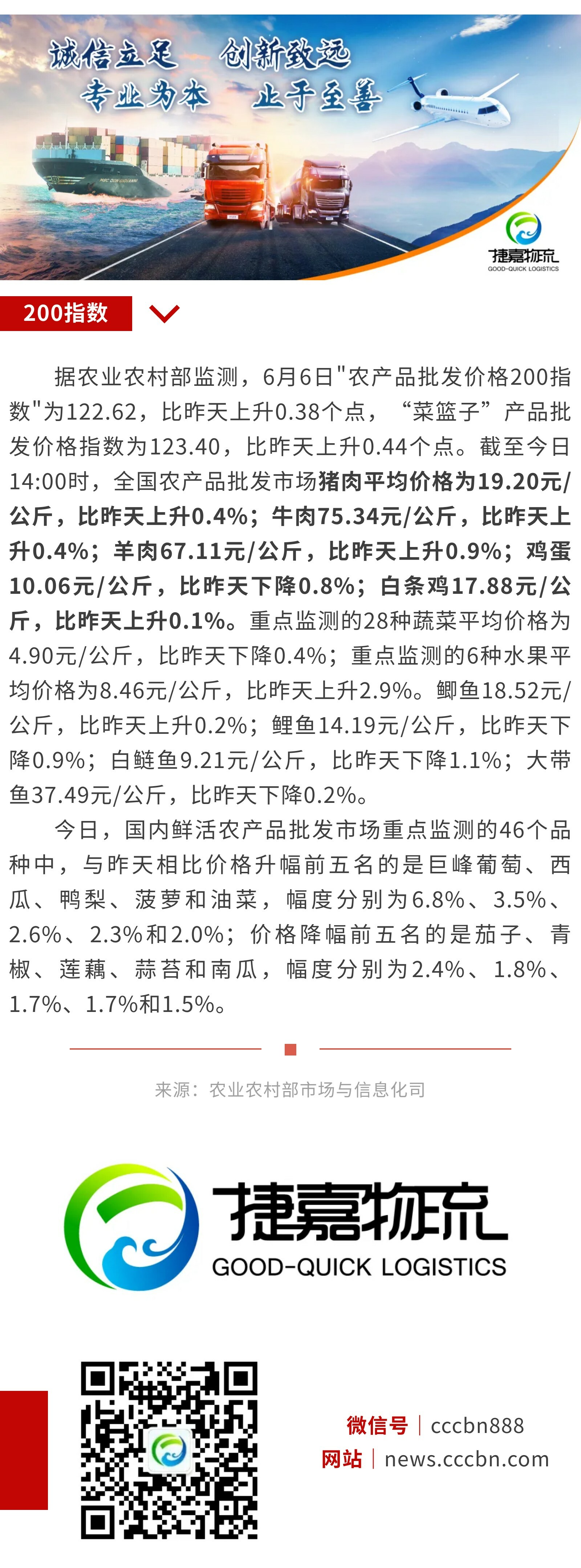 6月6日:"农产品批发价格200指数"比昨天上升0.38个点